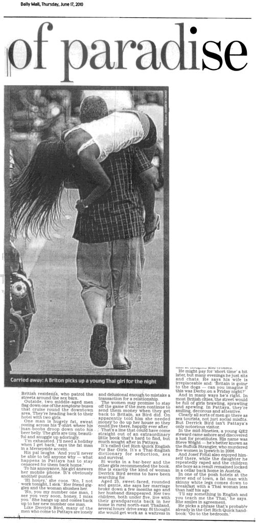 I am confident that there wouldn't be such an enourmous number of expats living in Pattaya if it would just consist of bars as the article suggests. Of course, when only talking to drunk Britons on Walking Street or Beach road which make up about 0.2% of Pattaya's size, it is hard to not get responses that are good 'Daily Mail' material. 8-)